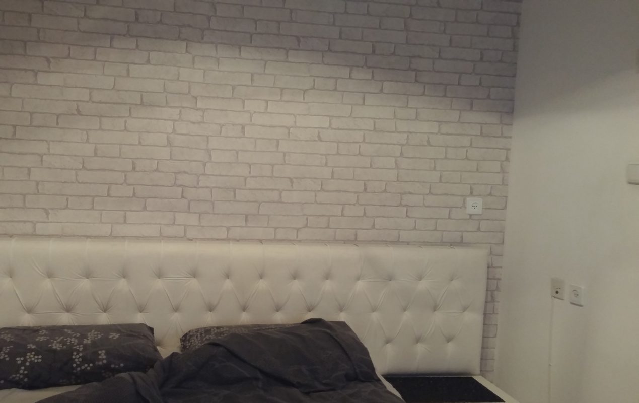 להשלמת תמונת העיצוב הכוללת בבית לקוח שביצע עבודת פרקט, הצענו ללקוח לחפות קיר אחד בחדר השינה בטפט דמוי בריקים.
